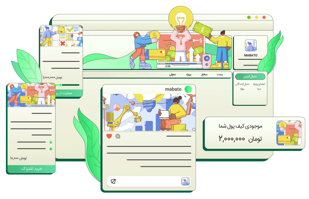 ماباتو هرچیزی رو که یک تولیدکنندهی محتوا، هنرمند یا بلاگر نیاز داره رو به شکل یکجا و در قالب یک پلتفرم کامل در اختیارش قرار میده تا بتونه در یک فضای حرفهای و مناسب فعالیت کنه و از سمت طرفدارهاش حمایت بشه و درآمد داشته باشه